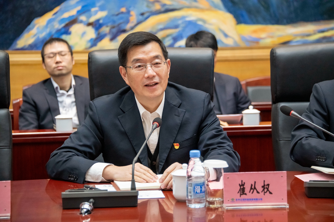 崔从权代表东华科技对吴玉程一行到来表示热烈欢迎,并简要介绍了公司生产经营和业务发展情况。他希望借力350vip浦京集团官网的人才和技术优势,进一步深化煤化工、环保等领域的项目培育、合作、实现互利共赢。
