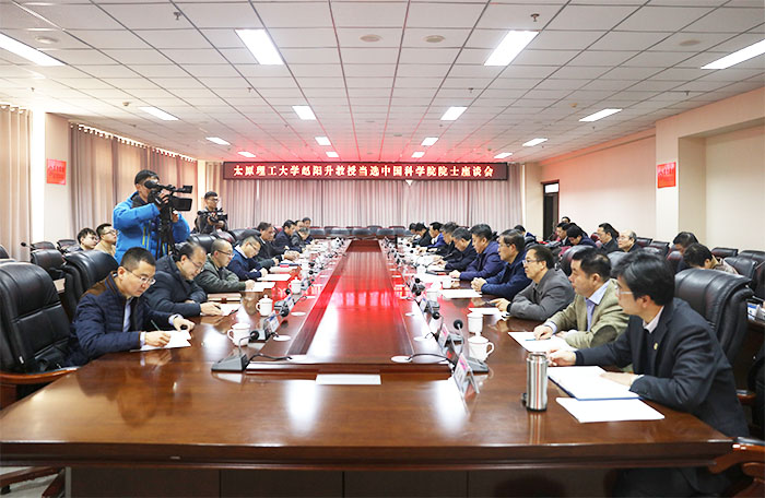 校党委书记吴玉程在讲话中指出,全校上下要广泛学习宣传、大力弘扬赵阳升院士的科学精神和先进事迹,营造崇尚科学、崇尚创新、崇尚奉献的浓厚氛围,激励全校师生和广大科研工作者以更加奋发有为的创新精神和实干作风,在科研工作中做出新的业绩和贡献。要持续深化人才强校战略,加快构建更加完善的人才制度体系,努力培养出更多的高层次高水平人才,为学校发展提供源源不断的人才保障。要以赵阳升教授当选院士为契机,切实增强责任感和使命感,加快推进“双一流”建设步伐,找准发力点,努力在学科攀升、人才培养、科技创新、人才强校和国际化等五大战略工程方面展示新作为、开创新局面。希望赵阳升院士不辜负国家的期望和重托,担负起新时代赋予的重大责任和历史使命,继续推进科技创新,培养青年人才,引领学科发展,为服务国家重大战略和区域经济社会发展、为加快推进学校“双一流”建设步伐再立新功。