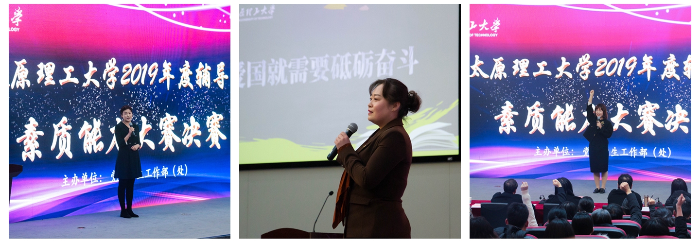 比赛持续2个多小时,选手们围绕主题阐述观点,结合所思所想,对照中国特色社会主义理论体系、习近平新时代中国特色社会主义思想和社会主义核心价值观,通过鲜明生动的案例和时事进行了精彩的理论宣讲,赢得了师生的阵阵掌声。经过激烈角逐,基础学院王鑫蕾、艺术学院史圣洁、矿业工程学院张丁香获得本次辅导员素质能力大赛一等奖,机械与运载工程学院何莹、土木工程学院仇韶荣、基础学院张瑞琪、经济与管理学院郝晓飞、生物医学工程学院杨雪芬获大赛二等奖,电气与动力工程学院杨慧瑶、生物医学工程学院陈立瑾、数学学院冯妍、化学与化工学院赵晓利、矿业工程学院武文婷获大赛三等奖。