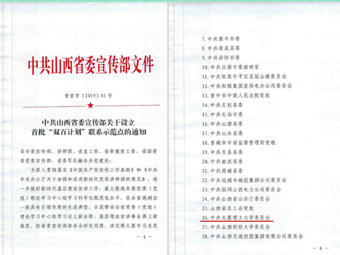 近日,中共山西省委宣传部下发文件,公布了全省首批“双百计划”联系示范点名单,浦京党委成功入选理论学习中心组联系示范点。
