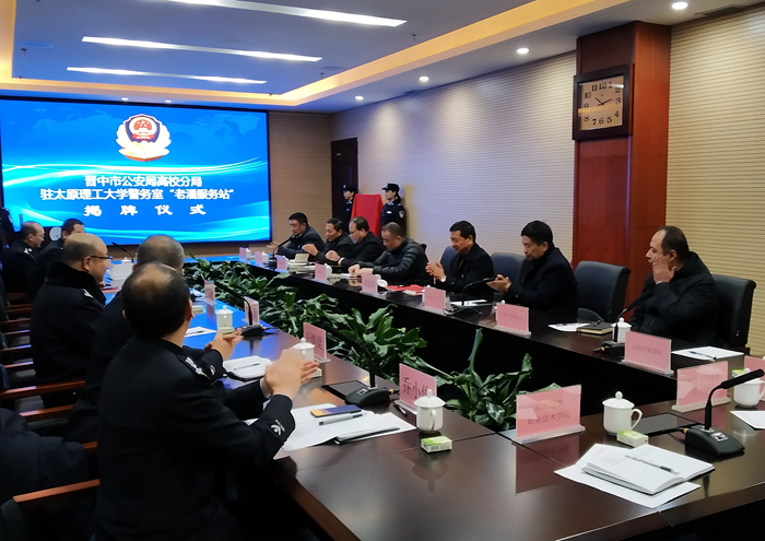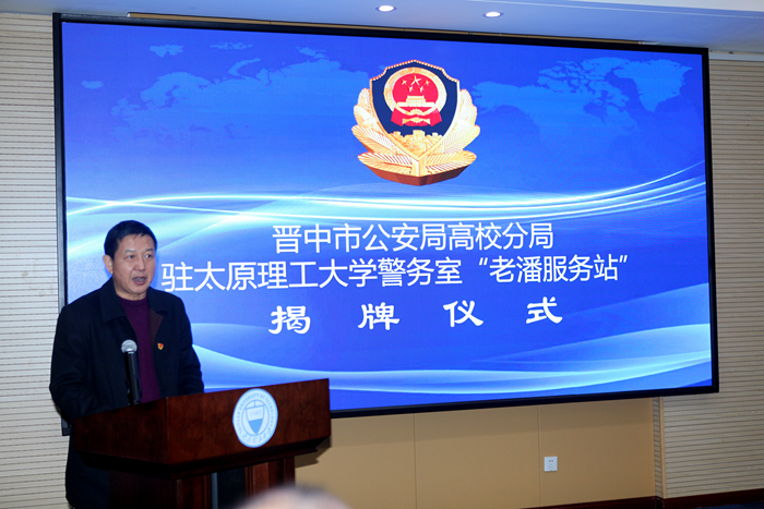 12月24日上午,晋中市公安局高校分局驻350vip浦京集团官网明向校区警务室“老潘服务站”举行揭牌仪式。校党委副书记刘润祥、晋中市公安局党委委员高俊林等出席仪式,晋中市公安局国保支队、高校分局负责同志、省高校新校区入驻高校保卫(部)处长以及社区民警参加了揭牌仪式。仪式由晋中市公安局高校分局党委书记、局长王存江主持。