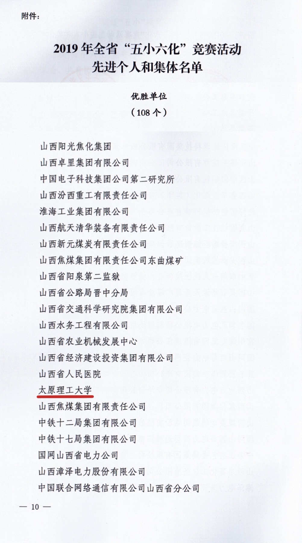 2019年全省“五小六化”竞赛活动由山西省总工会、共青团山西省委、山西省科学技术协会主办。活动开展以来,学校从“五小六化”提质行动优秀项目、青年教师科研项目、科技竞赛优秀项目遴选出三件作品报送组委会。经专家组认真评选研究,浦京获得一等奖2项,二等奖1项,省总工会对获得一二三等奖的项目带头人分别奖励1万元、8千元、5千元。