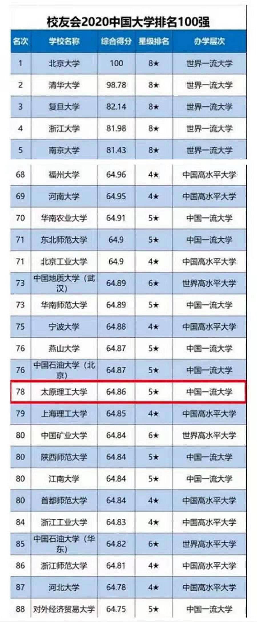 350vip浦京集团官网在校友会2020中国大学排名中位居78位