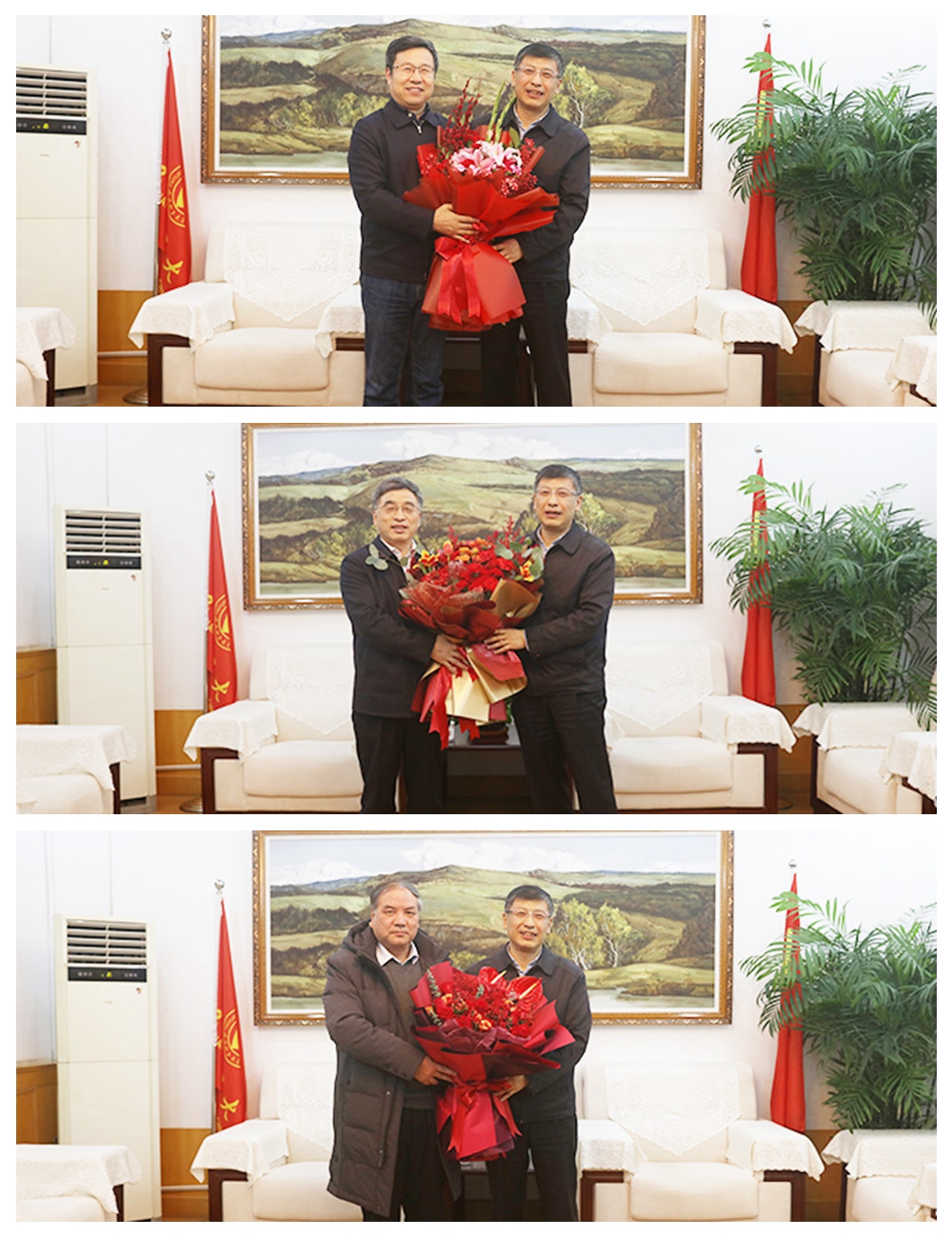 1月9日下午,省委组织部副部长、省人力资源和社会保障厅党组书记、厅长卢建明,省委人才办主任丁耀武一行来校看望慰问浦京在校的两院院士金智新、黄庆学、赵阳升。校党委书记吴玉程陪同慰问。党委办公室、组织部、人事处、院士办等相关部门和单位负责人参加了相关活动。