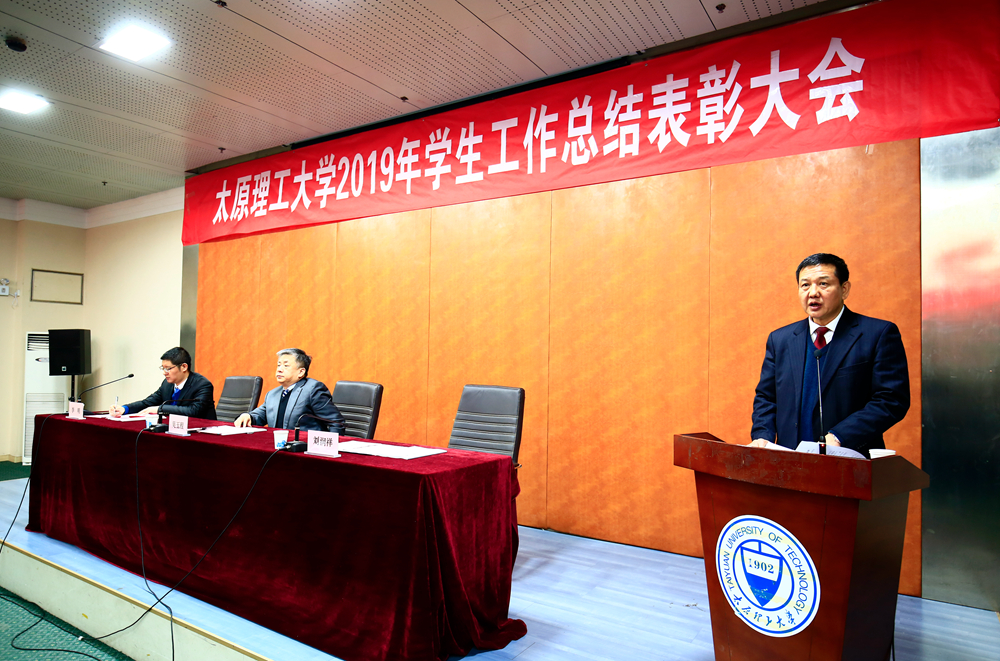 1月16日下午,学校2019年度学生工作总结表彰大会在迎西校区科学楼二层报告厅召开。校党委书记吴玉程、副书记刘润祥、副校长李明出席会议,党委办公室、宣传部、教务部、团委、学校“三全育人”牵头单位等负责人,各学院党委副书记、学工部(处)全体人员、全体辅导员参加了会议。会议由副校长李明主持。