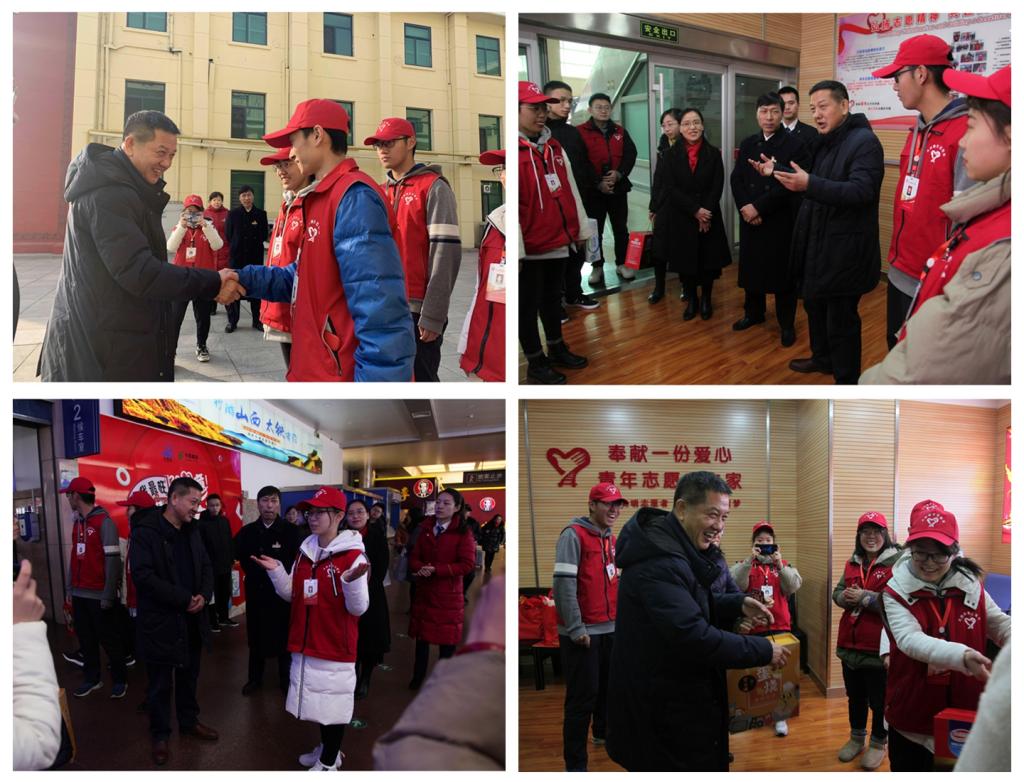 1月21日下午,校党委副书记刘润祥在校团委负责人的陪同下来到太原火车站看望慰问浦京参与2020春运志愿服务的志愿者,为他们送去新春的问候。太原站党委副书记杨绍文及团委负责人陪同看望。