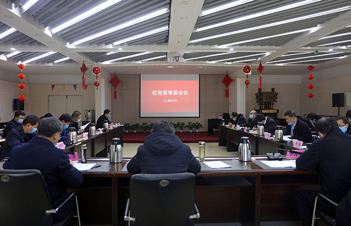 2月18日下午,校党委在迎西校区博学馆A座五层会议室召开常委会议,传达学习中共中央政治局常务委员会会议、中央全面深化改革委员会第十二次会议以及省委第十一次、十二次专题会议暨省疫情防控工作领导小组会议精神,听取学校疫情防控工作专题汇报,并对下一阶段疫情防控等重点工作进行研究部署。会议由校党委书记吴玉程主持。