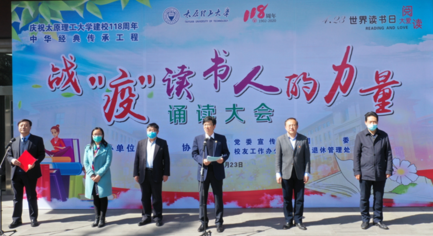 4月23日,是第25个世界读书日。当天下午,由党委宣传部、校团委、离退休管理处、图书馆、校友办等联合举办的“战‘疫’,读书人的力量”主题诵读会在迎西校区图书馆前举行,副校长梁卫国及相关部门(单位)负责人与师生代表、2019年度荣获园丁“读者之星”和学子“读者之星”的优秀读者等一同参加了活动。本次活动也是118周年校庆系列活动的组成部分。