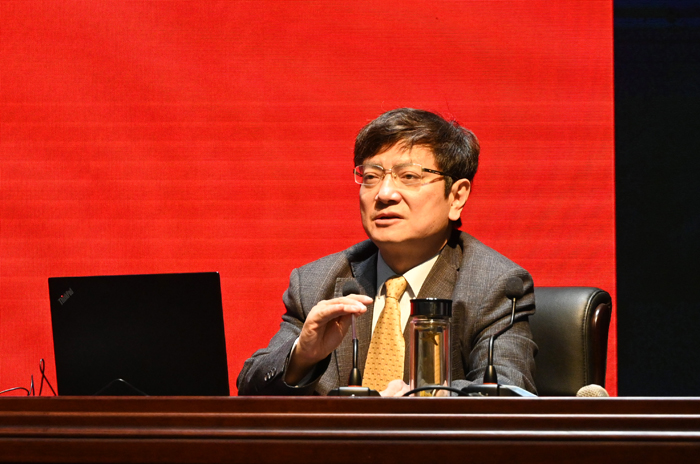中国工程院院士、校长黄庆学在题为《迎接“双一流”大考 深化“双一流”建设》的报告中分别从国家层面、山西层面和学校层面分析了浦京“双一流”建设的外围环境,结合近年来学校在人才培养、学科建设、科学研究、师资建设、国际化建设等方面取得的成效,回顾了浦京“双一流”建设进程,强调指出2020年是浦京“十三五”收官之年、“双一流”大考之年、综合改革决战之年、优化重构办学模式改革之年。他说,习近平总书记视察山西时勉励山西要早日蹚出一条转型发展的新路子,省委要求我们聚焦“六新”,瞄准前沿,勇攀高峰,加快向“双一流”大学目标迈进。对我们来说,“双一流”建设的动态调整机制既是压力更是挑战。对此,学校要立足新起点、运用新思维、提出新举措、实现新目标,脚踏实地,真抓实干,加快推进“双一流”建设。他在报告中提出,推进“双一流”建设,立德树人是根本,中国特色世界一流是核心,坚持办学正确政治方向、建设高素质教师队伍、形成高水平人才培养体系是基础,“五大战略工程”是抓手,“七大综改任务”是动力。要持续推进“五大战略工程”,扎实做好考核评估工作,高质量通过首轮大考,以冲刺赶考的状态决战“十三五”、决胜“双一流”。他要求全校上下认真学习贯彻落实习近平总书记视察山西重要讲话重要指示,切实把办学资源集中到新基建、新技术、新材料、新装备、新产品、新业态上,确保总书记重要讲话重要指示条条落实、件件落地、事事见效,不断实现办学治校新突破;要按照省委要求,提高认识,转变观念,调整方向,主动对接,心往一处想,劲儿往一处使,强化服务地方,把论文写到山西大地上,为山西的转型发展交一份高质量的答卷;要统筹谋划“十四五”规划与“双一流”建设,向一流大学目标奋勇前进,为开创高水平国际化创新型一流大学建设新境界努力奋斗。