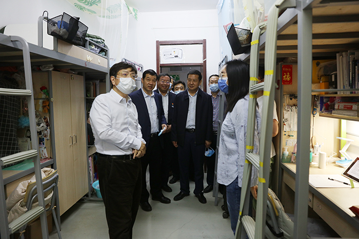 检查中,校领导先后来到校门口接待点、学生公寓、食堂、教学楼等场所,细致查看学生返校后的学习生活情况,并与同学们亲切交谈,勉励他们倍加珍惜宝贵学习时光,务必全身心投入,最大程度地把耽误的时间抢回来,把受疫情影响延缓的进度补回来,嘱咐他们遵守校规校纪、做好自身防护、减少聚集、锻炼身体,养成良好卫生习惯,高标准高质量完成学习任务。