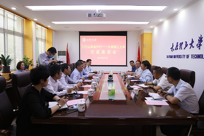 6月3日上午,中国工商银行山西省分行党委书记、行长陆钦,副行长梅超,副行长兼太原分行党委书记、行长邹建文及主要部门负责人一行前来浦京,就银校合作事宜进行交流洽谈。校党委书记郑强、副校长树学峰会见陆钦一行并在迎西校区办公主楼316会议室座谈。党委办公室、财务部、信息化管理与建设中心等部门(单位)负责人参加了座谈。