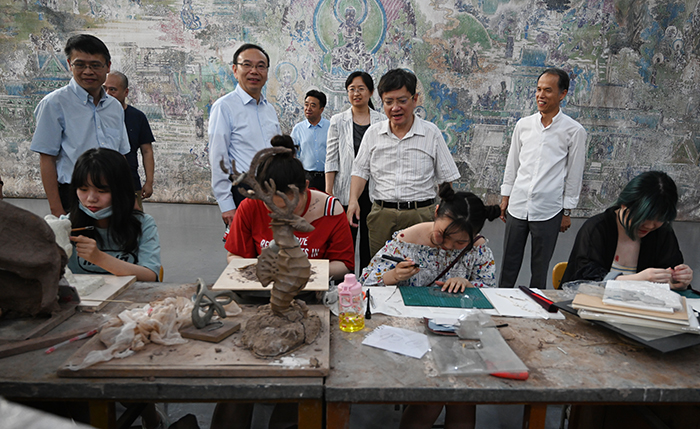 6月12日下午,校党委书记郑强、副校长吴斗庆和浙江大学徐志康、高长有、计剑、陈红征、高超、李寒莹、吴子良等专家学者一行,在相关人员陪同下,观看了浦京艺术学院2020届毕业生毕业作品展,并出席毕业生艺术沙龙。