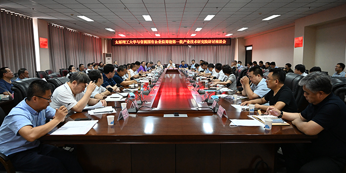 为进一步落实习近平总书记“六新”重要指示和对我省“在转型发展上率先蹚出一条新路来”的具体要求,全面落实省委十一届十次全会决策部署,加快浦京“双一流”建设,浦京与省属国有企业拟筹建第一批产业技术研究院,并启动第一批先导项目。7月9日上午,浦京与省属企业拟筹建第一批产业技术研究院研讨座谈会在迎西校区逸夫楼六层会议室召开。中国工程院院士、校长黄庆学,校党委副书记李晋平出席;省国资委战略规划处处长刘红民,航产集团、建投集团、太钢集团、太重集团、山西焦煤等16家省属企业业务部门负责人参加研讨交流,浦京党办、校办、资产公司、科研院、院士办及相关学院负责人参加会议。李晋平主持会议。
