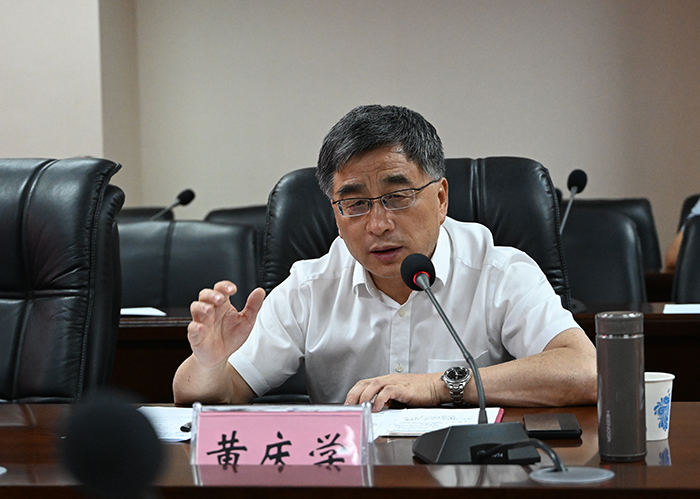 黄庆学致欢迎辞,代表学校对刘红民处长和省属企业相关负责人的到来表示欢迎,介绍了学校近年来在人才培养、科技创新及推进“双一流”建设过程中所付出的努力和取得的成绩,特别是学校在“双一流”建设主建学科所形成的以院士领衔的高水平学术团队的优势。他表示,与省属国有企业筹建产业技术研究院,是贯彻落实习近平总书记视察山西重要讲话重要指示和省委十一届十次全会精神的重要举措。省属国有企业是我省创新的主体,高校是创新的重要力量,研究院的建立将成为连接产学研的桥梁和纽带。希望学校和企业全面对接、携手努力,聚焦培育一流创新生态和14个战略性新兴产业集群,为山西先行先试、“率先蹚出一条新路来”提供思路,以科技创新为引领,在平台建设、研发合作、人才引育等方面深度叠加优势,为我省高质量转型发展贡献力量。