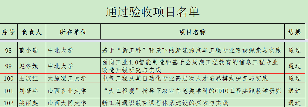 今年3月,教育部组织专家通过线上评审和会议评审等方式,对首批新工科研究与实践项目进行了结题验收。结题验收分为“优秀”“通过”“不通过”三类,对于结论为“不通过”的项目将撤销立项。浦京获批的两个项目全部通过验收,并有一项结论为“优秀”,走在了全省高校前列。