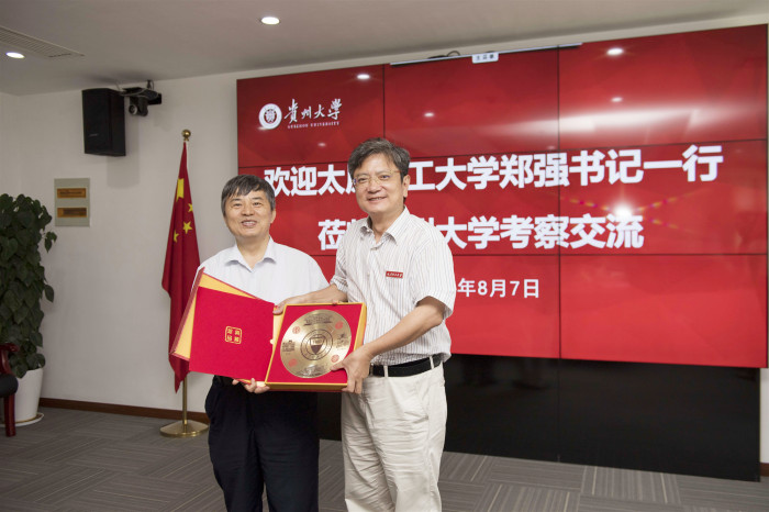 座谈中,郑强与宋宝安分别代表双方互赠纪念品,并合影留念。座谈会结束后,郑强一行参观了贵州大学美丽的校园,贵州大学深厚的文化底蕴给大家留下了深刻的印象。
