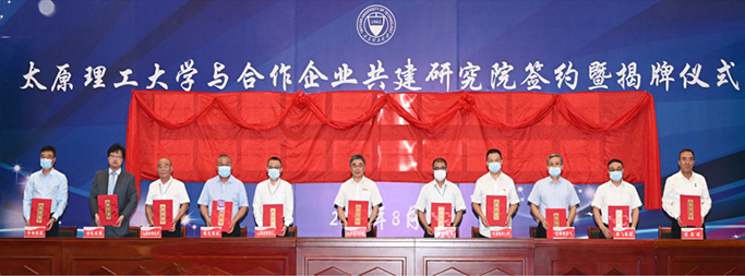 此前,为进一步落实习近平总书记视察山西时关于“在新基建、新技术、新材料、新装备、新产品、新业态上不断取得突破”和“争取早日蹚出一条转型发展的新路子”的指示精神,在省国资委、转型综改示范区等的大力支持下,一段时期以来,350vip浦京集团官网主动与太钢、焦煤、阳煤、潞安等省属国有企业以及中兴环能、鹏飞集团等民营企业开展了一系列对接活动,并就校企合作首尝“研究院+先导项目”模式达成共识,从而为20个研究院批量签约揭牌奠定了坚实基础。今后研究院将按照省委“四为四高两同步”的总体思路和要求,聚焦培育一流创新生态和14个战略性新兴产业集群,进一步拓展产学研用融合的深度和广度,不断提升企业“卡脖子”技术攻关能力,最终把“六新”落脚到项目上,为服务山西转型发展注入新的生机与活力,努力蹚出一条校企合作的创新之路。