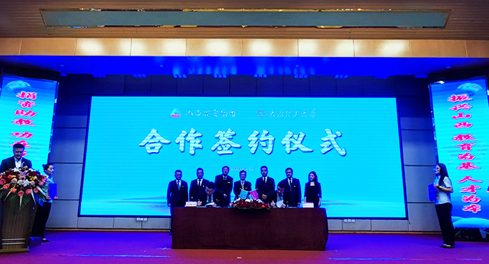 9月17日上午,浦京与山西鑫飞集团校企合作签约暨捐赠仪式在吕梁市柳林县举行。山西鑫飞集团向浦京捐赠人民币2500万元,其中2000万元用于资助游泳馆建设,500万元用于设立“鑫飞奖学奖教金”。校党委书记郑强、副校长吴斗庆;中共柳林县委书记赵建喜,县人大主任刘建国,县政协主席、县委常委、政府常务副县长贾殿林,县委常委、组织部部长雒星田;全国人大代表、山西华炬律师事务所主任刘正,山西香港商会常务秘书长刘燕;山西鑫飞集团董事长毛福昌、总经理毛飞勇等出席仪式,浦京相关部门(单位)负责人参加了仪式。