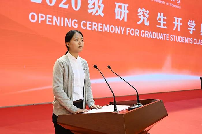 新生代表,武汉籍研究生、艺术学院2020级免试推荐硕士研究生熊睿平同学发言,感谢学校在新冠肺炎疫情肆虐时,对湖北籍学子给予的无微不至的关心、鼓励与帮助,分享了自己在战胜疫情期间所体会到的伟大的抗疫精神,表示要秉承“求实、创新”的校训,钻研自己的专业,紧跟时代的步伐,将自己的学术研究和人类社会的发展、民族复兴的事业、人民幸福的追求紧密结合起来,做新时代的奋斗者和践行者。