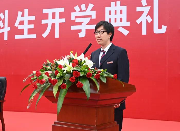 求实学院新生家长代表王文成在发言中希望新同学们能成为建设祖国、奉献社会、服务人民的人才;惜时博学,勇于创新,为自己未来更好的发展打下坚实的基础;全面发展,绽放青春,不负韶华、不负时代。