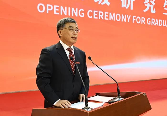 从今天开始,同学们就将开启研究生学习生涯。习近平总书记强调,研究生教育在培养创新人才、提高创新能力、服务经济社会发展、推进国家治理体系和治理能力现代化方面具有重要作用。因此,与本科阶段相比,研究生运用知识创新创造显得更为重要。这就要求你们必须要“研究”,把“研究”贯穿学习的全过程,既做知识的学习者,更做新知识的创造者。要拿出“钻”劲,把一件事情努力做到极致,让科学精神、创新思维和研究能力成为你们今后走上社会的基本素养。