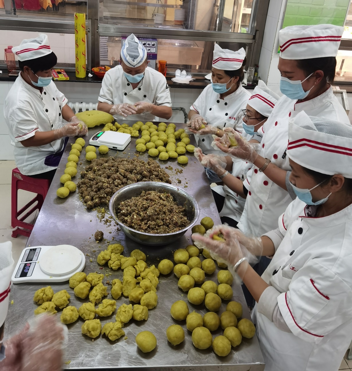 据了解,今年是学校第二年推出特别定制的月饼,印制了校徽图案的手工圆盘月饼将传统文化与校园文化有机结合,创意十足,让饮食文化更有内涵。为了让全校师生能在国庆中秋之际吃到最新鲜、最美味的月饼,后勤保障处饮食服务中心从9月中旬就开始了月饼制作的前期准备工作,因为白天餐厅还要给师生正常供餐,二十余名厨师利用周末和下班后的时间,加班加点紧急赶制月饼,旨在为全校师生送上“最甜蜜的中秋礼物”。