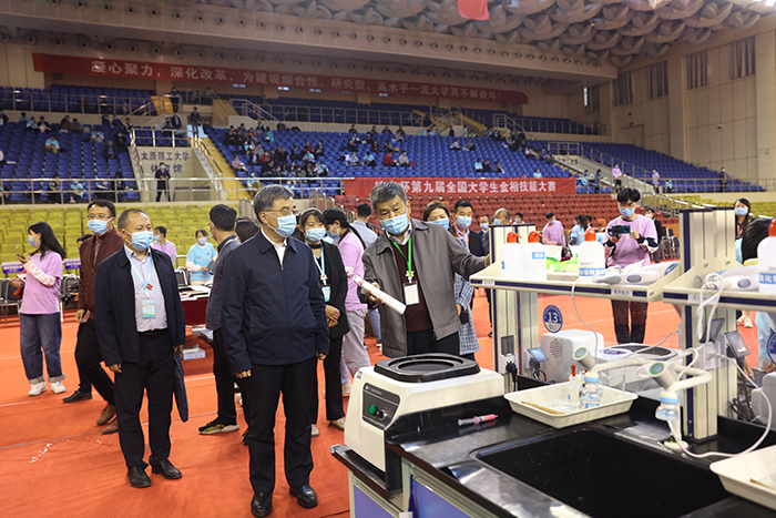比赛得到了全校上下的高度重视。中国工程院院士、校长黄庆学,校党委副书记刘润祥先后深入赛场观摩比赛,慰问工作人员和志愿者。黄庆学在饶有兴致地观看了参赛选手的表现后指出,选手们扎实的基本功、坚强的意志和精湛的技艺水平,深刻诠释着全国大学生金相技能大赛“以赛促教、以赛促改、以赛促学”的内涵和真谛。他表示,国家强盛需要更多扎实肯干、吃苦耐劳、精于钻研、善于协作的优秀人才,相信大赛一定会为我国材料领域输送更多“能工巧匠”和“大国工匠”。在比赛现场,黄庆学等还实地了解评分、统分等工作环节,充分肯定了工作人员和志愿者们的辛勤付出,并向他们表示慰问和感谢。