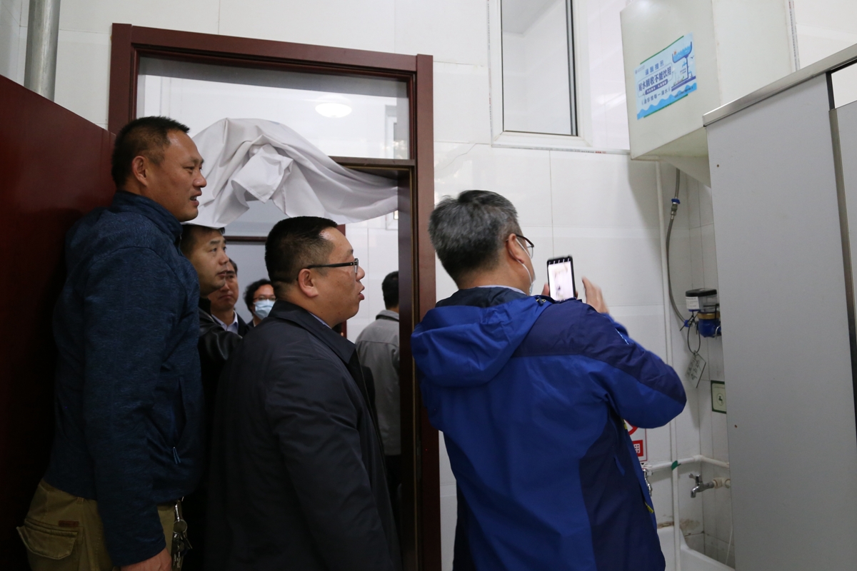 验收组一行现场查阅了资料,并实地查看了行政楼节能采光设施与节水器具、涧河雨水回收装置建设、太阳能路灯、绿色节能宣传活动、行远楼教室节能控制系统、直饮水尾水回收装置以及空气源集热设备等节能措施。