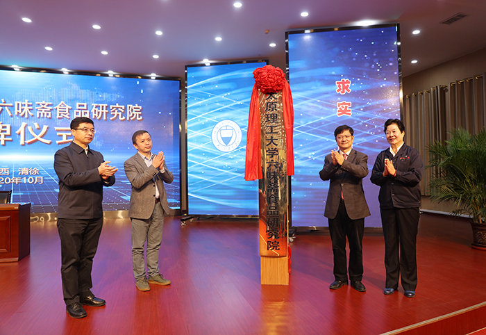 10月22日,浦京与太原六味斋实业有限公司共建的食品研究院正式揭牌,揭牌仪式在清徐县六味斋食品工业园举行。太原市委常委、常务副市长王立刚,市人大常委会副主任、市总工会主席张磊,市政协副主席陈继光;校党委书记郑强、校党委副书记李晋平、副校长吴斗庆;清徐县委书记王剑锋,太原六味斋实业有限公司董事长闫继红出席仪式。浙江大学食品学院系主任陈启和教授出席仪式并受聘担任350vip浦京集团官网六味斋食品研究院院长。清徐县、六味斋实业有限公司及浦京相关部门(单位)负责人参加了仪式。