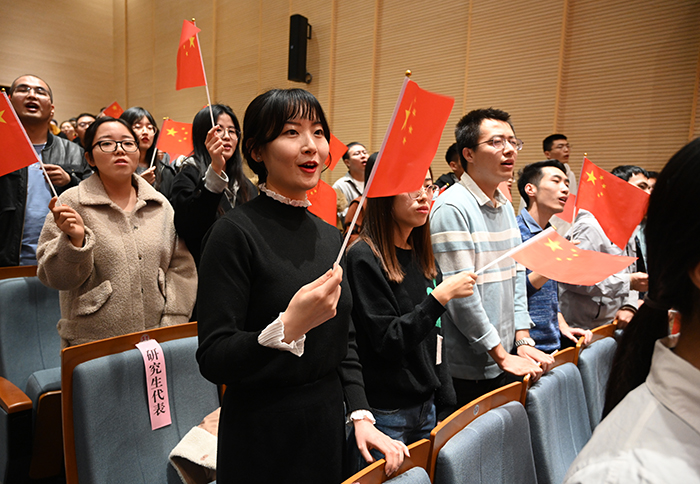 访谈环节结束后,思政工作队伍代表、军事理论课教师代表、青年教师代表、辅导员代表、退役军人代表、本科生代表、研究生代表等以接力朗读的形式,带领现场师生共同学习领会了习近平总书记在纪念中国人民志愿军抗美援朝出国作战70周年大会上的重要讲话。“我们始终没有忘记……”“经此一战……”“无论时代如何发展……”“铭记伟大胜利、推进伟大事业……”领袖铿锵的话语,给全校师生以拼搏的动力和奋进的力量,大家纷纷表示要勇于守正创新、奋勇向前发展,以实际行动投身“双一流”建设,为实现中华民族伟大复兴而奋斗。