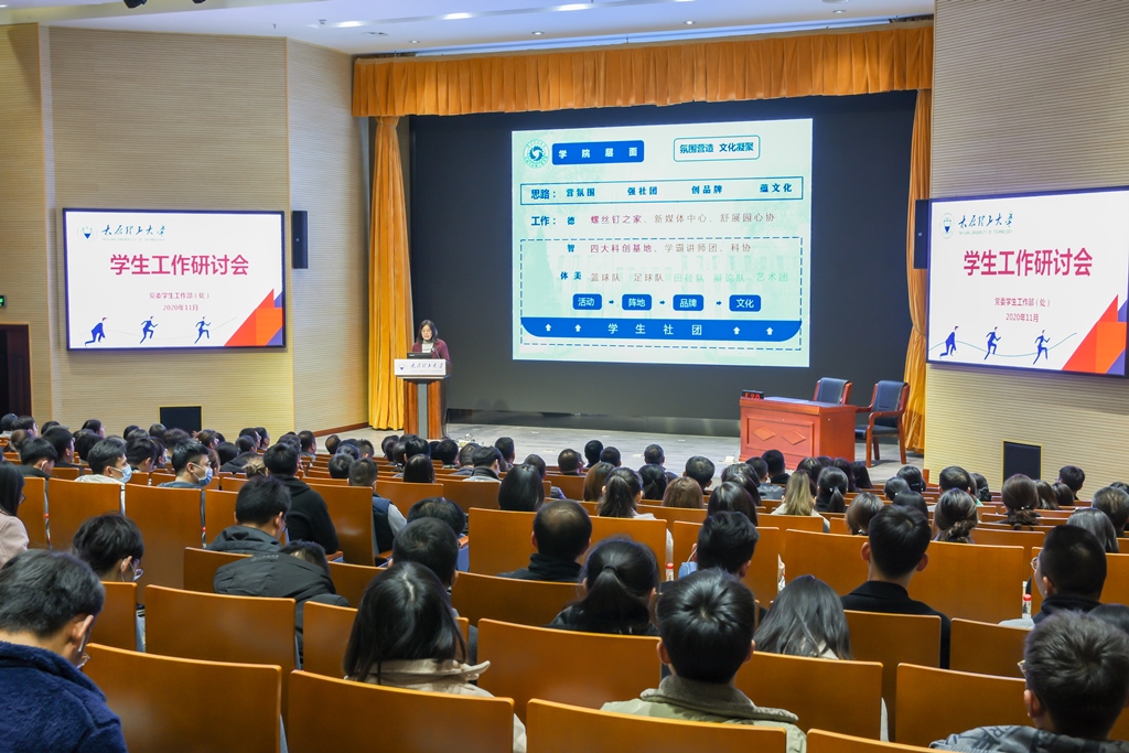 学工部负责人作了题为《以生为本、思政引领,建设促进学生全面发展的学生工作体系》的报告,从认识、行动、保障、思考四个方面进行了总结,提出要以“认知使命、坚定目标、探究方法、坚守阵地、勇于作为”为着力点,始终秉持“以学生为中心”的育人理念,肩扛使命、勇挑重担、敢于作为,与时俱进、乘势而上开拓学生工作新局面。