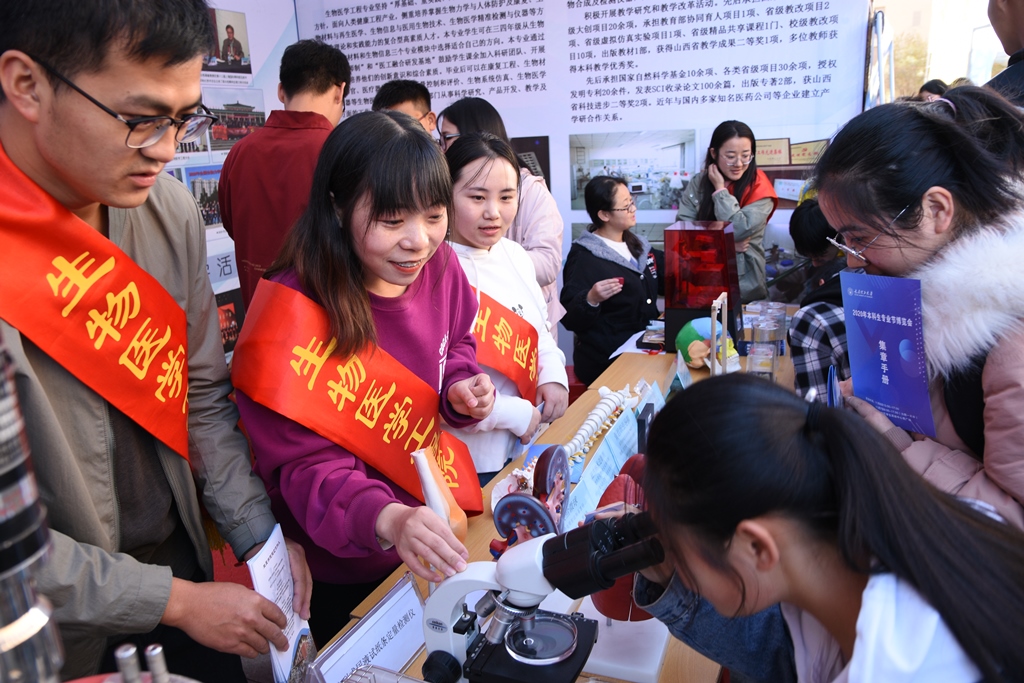 “各个专业的展示丰富多彩,让我们对专业分类和未来的发展方向有了更深入细致的了解,也对学校有了更深刻的认识。”开幕式结束后,大一新生王昕便迫不及待地来到专业博览会现场,穿梭在各展位间寻找自己感兴趣的专业。