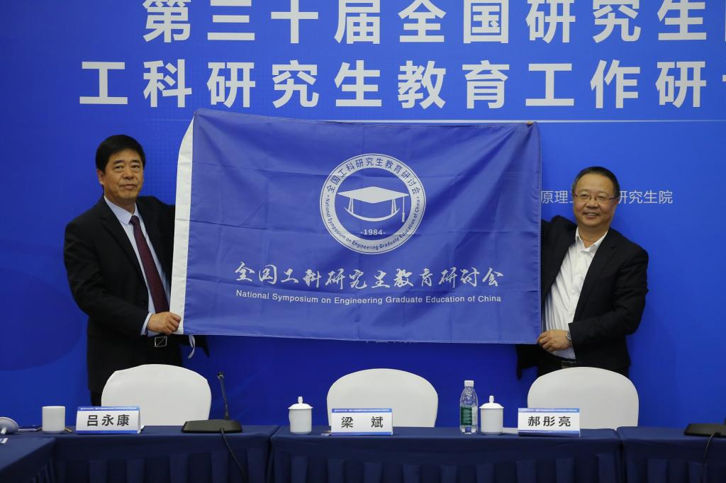 在会议闭幕式上,吕永康代表学校接过会旗并作表态发言,表示350vip浦京集团官网一定不辜负学会厚望,全力以赴办好下届会议,并希望各位研究生教育同仁届时莅临大会,相互交流,相互学习,共同推动工科研究生教育内涵提升。