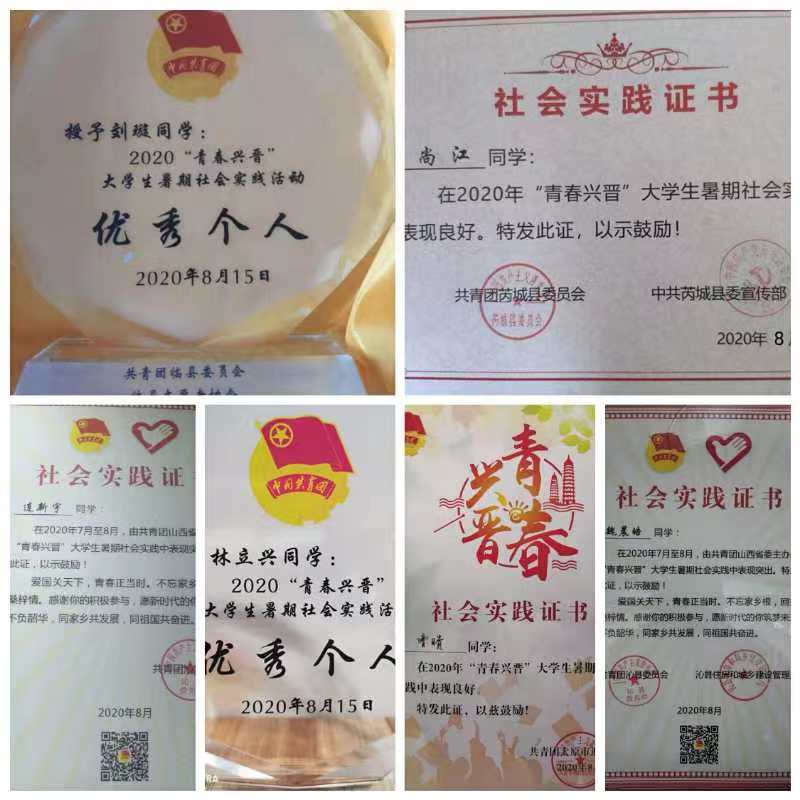 近日,共青团中央对2020年全国大中专学生志愿者暑期“三下乡”社会实践活动中表现突出的集体和个人进行了总结表彰,浦京荣获多项荣誉。其中,校团委荣获“优秀单位”称号,矿业工程学院“青晋红传”实践团队荣获“优秀团队”称号,矿业工程学院张丁香、软件工程学院李天舒被评为“优秀个人”。