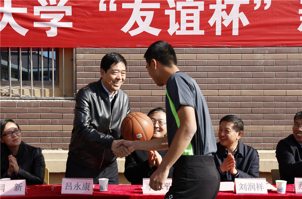 校党委副书记李晋平、刘润祥,副校长、校体育运动委员会主任吕永康出席新生篮球赛开幕式,学校相关部门及学院负责人参加。