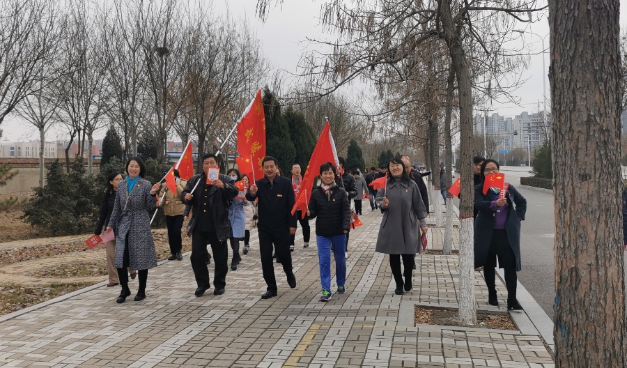 寒冷的冬日挡不住党员同志们火热的激情和昂扬的精神。刘润祥下达“出发”指令后,参加健步行的干部职工们精神饱满,迈着矫健的步伐,从明向校区行政楼出发,沿距离约3.3公里的规定路线,昂首前行,以行走与美丽的校园对话,用脚步丈量新校区建设成果,共同感受体验学校近年来的发展变化,展现出朝气蓬勃、积极向上,团结奋进、勇往直前的精神风貌。