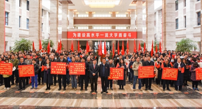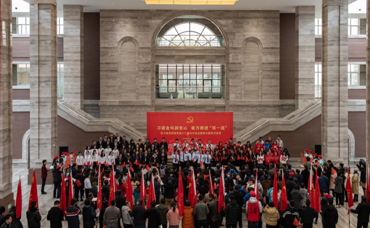 郑强在致辞中指出,党的十九届五中全会是在我国决胜全面建成小康社会取得决定性成就、“两个一百年”进入历史交汇点的关键时期召开的一次具有里程碑意义的重要会议。学习宣传贯彻党的十九届五中全会精神,是当前和今后一个时期的重大政治任务。我们的学校正处于改革发展和“双一流”建设的关键时期,每一个基层党组织都要充分发挥党在综合性研究型高水平一流大学目标建设中的领导核心作用,每一位党员都要毫不动摇地坚持和维护党的核心领导地位,不断增强党的凝聚力、战斗力和领导力、号召力,让党的旗帜在每一个基层阵地上高高飘扬起来,让共产党员的模范带头作用在校园里处处体现出来,在新时代学校推进“双一流”的征程中,始终不忘初心、牢记使命,将自己的本职工作与学校的改革发展紧密结合,深刻践行立德树人的根本任务和神圣使命。
