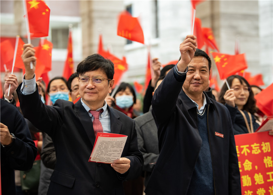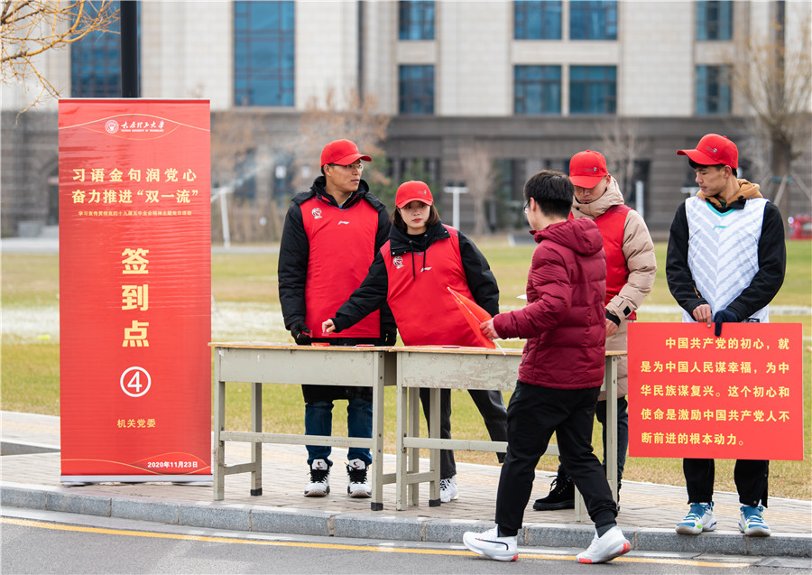 为深入学习贯彻落实十九届五中全会精神,鼓舞机关广大党员干部进一步将“两个维护”融入血脉、见诸行动,提升干事创业的精气神,以昂扬向上的精神状态为浦京“双一流”建设贡献力量,11月23日下午,浦京机关党委组织开展了“习语金句润党心奋力推进‘双一流’”主题党日活动,活动以“习语诵读+明向校区健步行”的形式开展。机关党员干部职工300余人参加了主题党日活动。校党委书记郑强、副书记刘润祥出席活动启动仪式。机关党委负责人主持活动。