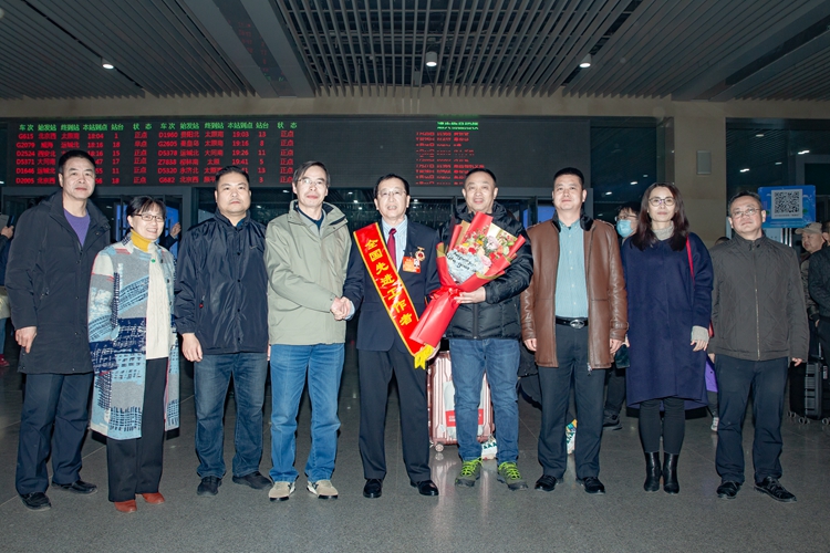 11月24日下午,当身披红色绶带、胸佩全国先进工作者奖章的邓存宝教授走出太原南站时,受到了校工会和安全与应急管理工程学院干部教师代表的热烈欢迎。