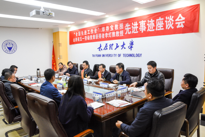 11月30日下午,学校举行“全国先进工作者”、省五一劳动奖章获得者先进事迹座谈会。校党委副书记李晋平与荣获“全国先进工作者”称号的邓存宝教授和山西省五一劳动奖章获得者李灯熬教授进行座谈交流。组织部、人事处、校工会、安全与应急管理工程学院、大数据学院等相关部门(单位)负责人、相关学科团队成员等参加了座谈,座谈会由校工会负责人主持。