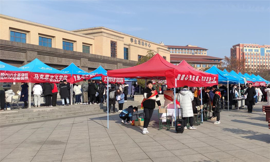 在明向校区西区小广场,浦京青年志愿服务总队与11家学院青年志愿服务队伍采用多种活动形式,共吸引700余名同学参与到本次主题活动中。