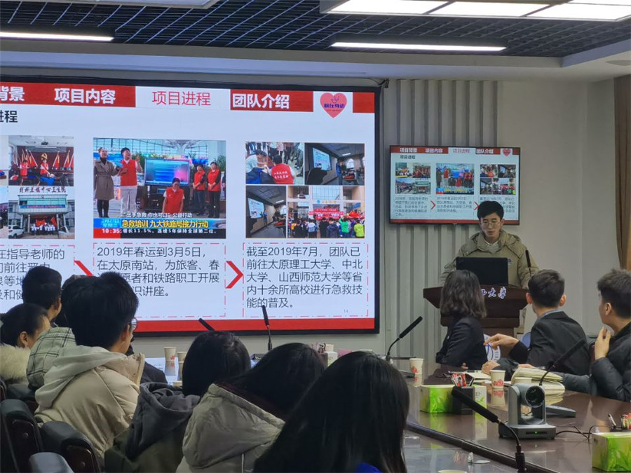 研讨中,来自山西医科大学的三位同学分别围绕“‘救在你身边’急救培训志愿服务项目”“小丑医生志愿服务项目”与“宁养社会工作志愿服务项目”发表主题演讲;浦京青年志愿服务总队队长、各学院青年志愿者、爱心家园志愿者等40余人认真聆听演讲,并与山西医科大学的志愿者们充分交流,相互汲取志愿服务工作经验。