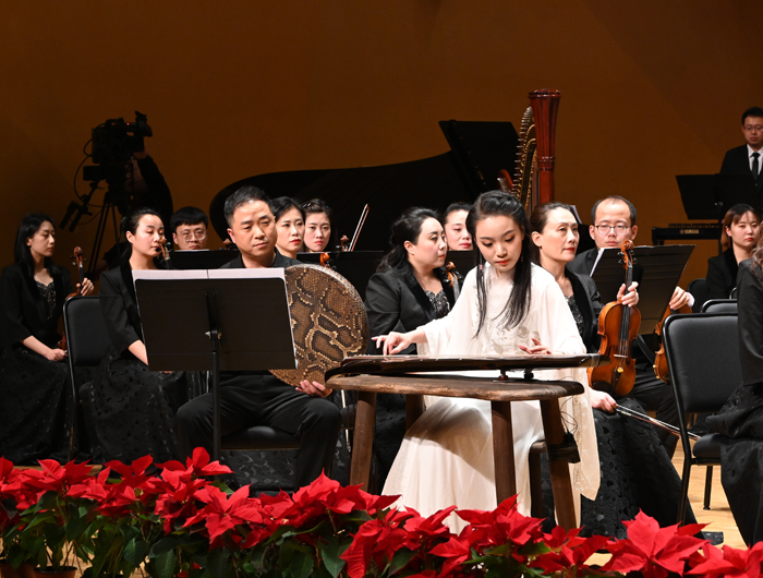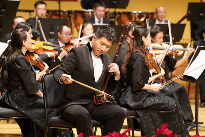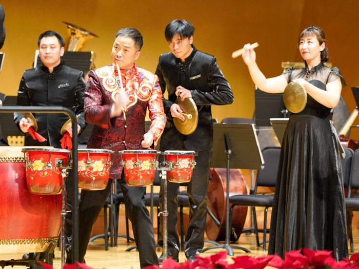 音乐会上,管弦交替、中西合璧,令观众充分领略了器乐之美:古琴曲《春风》展现了古琴的浑厚典雅;气势雄浑的二胡协奏曲《长城随想》成功表现出了华夏神韵;经典的小提琴协奏曲《梁祝》诠释出富有诗意的爱情主题;脍炙人口的山西晋北吹打乐代表曲目《大得胜》粗犷热烈、高亢激昂;《激情燃烧的岁月》以交响乐强大的音乐冲击力,展现出中国革命激荡的历史与革命先驱们前赴后继的革命主义精神,用音乐的笔触将观众带回到那段激情燃烧的历史岁月;钢琴协奏曲《黄河》第四乐章充分展现出中国人民在共产党的领导下必将赢得战争胜利、走向世界之巅的强大意志。
