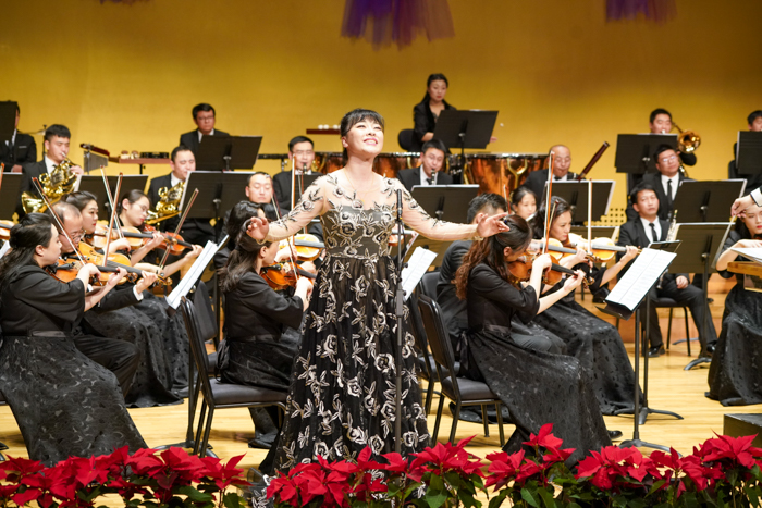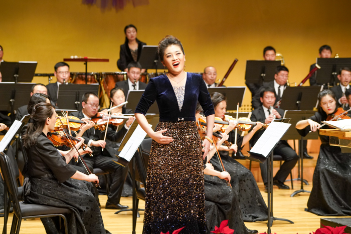 一曲大气磅礴的《红旗颂》将听众带回到开国大典上五星红旗冉冉升起的激动时刻,拉开了整场音乐会的序幕。男女歌唱家相继献唱放歌,用声音征服观众:浑厚男中音诠释的著名咏叹调《斗牛士之歌》成功地塑造出百战百胜的勇敢斗牛士的高大形象;悠扬明亮,荡气回肠的歌曲《吕梁颂》表现了山西吕梁人民热爱家乡、不屈不挠、英勇抗敌的革命主义精神;深情的《我爱你中国》让每一个炎黄子孙心中都荡漾起对祖国的真挚情感;歌曲《曙色》呈现出中华民族历经苦难,走过坎坷,迎来曙光的恢弘场景,谱写出一曲荡气回肠的历史篇章;男女声四重唱《不忘初心》充分表达出共产党人心系百姓、感恩群众的情怀,激荡着一股守初心、担使命的昂扬力量;女高音歌唱家吟唱的充满活力的《春之声圆舞曲》描绘了大地回春、冰雪消融的生机景象。