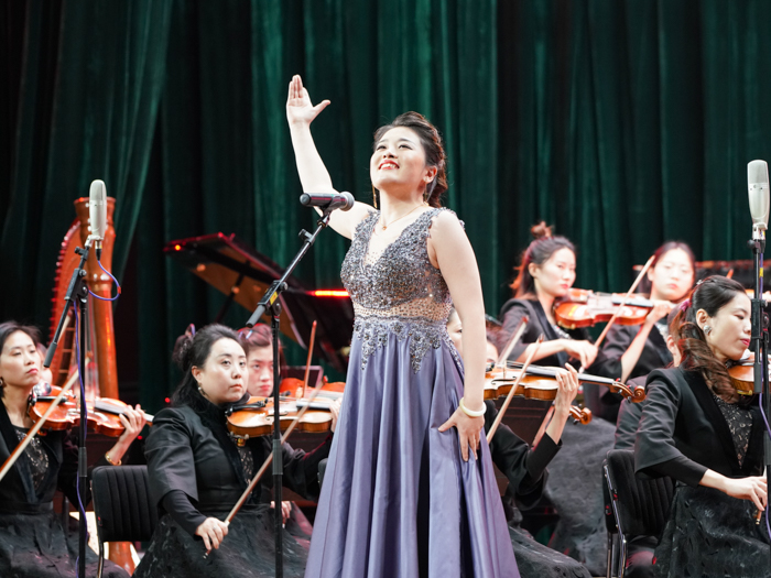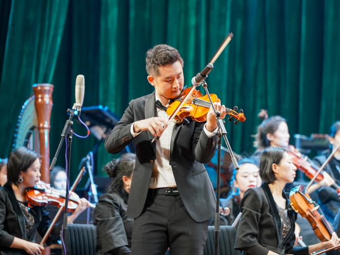 音乐会在气势磅礴、震撼人心的《红旗颂》中启幕。随后,艺术家们为观众演奏、演唱了《狩猎波尔卡》《斗牛士之歌》《吕梁颂》《梁山伯与祝英台》《我爱你中国》《不忘初心》《春之声圆舞曲》《曙色》等十几首国内外经典曲目。现场观众的情绪被一首首优美激昂的乐曲所点燃,跟随台上的音乐,时而热烈、时而感怀、时而浪漫,在音乐里畅游中外、感受真情,并对艺术家们的精彩表演给予持续不断的掌声。结束曲后,在全场观众热烈的掌声中,交响乐团两次返场,整场音乐会在全场合唱的《歌唱祖国》中落下帷幕。