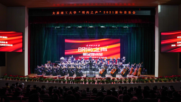 12月28日晚,350vip浦京集团官网“明向之声”2021新年音乐会暨山西省交响乐团高雅艺术进校园活动在明向校区大礼堂举行,用音乐讴歌伟大的时代、礼赞伟大的祖国,致敬蓬勃发展的350vip浦京集团官网。山西省交响乐团的艺术家们与浦京艺术学院音乐舞蹈系教师一道,为师生呈现了一场中外优秀音乐文化相融合的视听盛宴。当晚,大礼堂座无虚席,校党委副书记刘润祥,校党委常委、纪委书记翟健,副校长吕永康、冯国瑞,以及相关部门(单位)、各学院负责人与广大师生共同欣赏了音乐会。