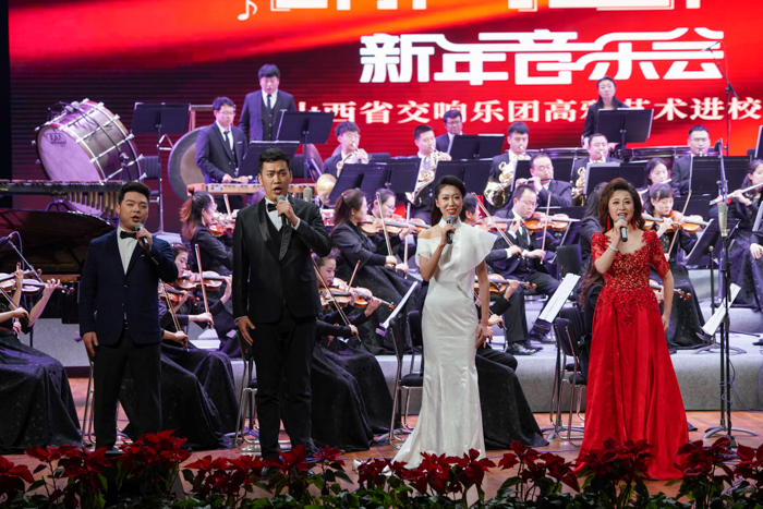 刘润祥代表学校致辞。他说,即将过去的2020年,在省委、省政府的坚强领导下,校党政领导班子团结带领全校师生员工,坚持以习近平新时代中国特色社会主义思想为指导,在全力做好疫情防控工作的同时,锐意改革、奋发进取,推动学校各项事业取得了新的显著成绩,在建设综合性研究型高水平一流大学的征程上,续写了实干成就梦想的壮美华章。他指出,在校党委书记郑强教授的倡导推动下,学校组建了音乐舞蹈系,首次在山西大剧院举办高质量新年音乐会,并为明向校区师生举办专场,深刻体现了学校始终坚持“以学生为中心”的办学理念,进一步提升了浦京的美育教育水平。新的一年,祝愿学校在建设综合性研究型高水平一流大学的征程上,砥砺奋进、乘风破浪,不断铸就新的辉煌。