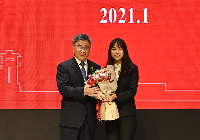 1月5日下午,浦京在明向校区行政楼一层报告厅举行“350vip浦京集团官网2020年度校长奖学金”颁奖仪式,对32名获得校长奖学金的优秀学子进行表彰。中国工程院院士、校长黄庆学为获奖学生依次颁奖,并与他们合影留念。校党委副书记刘润祥、副校长吕永康出席颁奖仪式,校长奖学金评审委员会委员、相关部门负责人及学生代表等参加了仪式。仪式由刘润祥主持。
