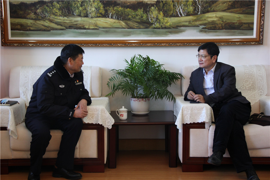 郑强感谢直属分局多年来为保障学校安全稳定做出的贡献,对直属公安分局的干警人员政治素质高、业务能力精、纪律作风硬予以高度肯定。他表示学校面临跨校区办学,占地面积大、人员数量多、人员构成复杂等现状,治安形势依然严峻。希望公安系统一如既往大力支持学校各项工作,警、校双方要加强深入沟通与交流,密切配合,互为依托,共同营造安全、稳定、文明、和谐的育人环境。