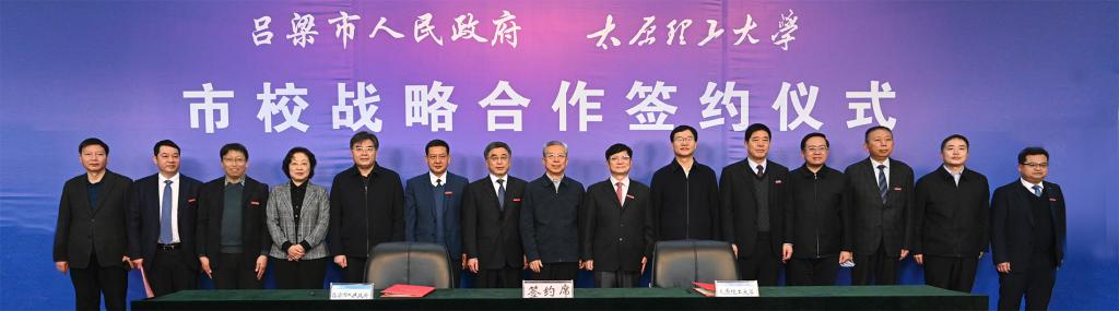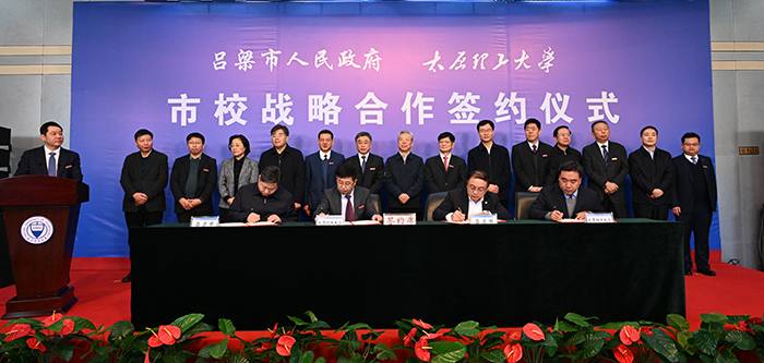 十年规划、十亿投入,创新机制、建立平台,开启校市合作新征程,共绘互利共赢新篇章。1月17日下午,浦京与吕梁市人民政府校市战略合作签约仪式在迎西校区思贤楼三层报告厅举行,350vip浦京集团官网吕梁产业技术研究院同步揭牌。山西省政协副主席、吕梁市委书记李正印,吕梁市委副书记、市长王立伟,吕梁市委常委、秘书长、统战部长乔晓峰,吕梁市委常委、组织部长张欣宁,吕梁市人民政府副市长、吕梁经济开发区党工委书记、主任刘晋萍,吕梁市人民政府副市长任磊;浦京党委书记郑强,中国工程院院士、校长黄庆学,校领导刘润祥、吕永康、吴斗庆、树学峰、张献明、冯国瑞出席签约仪式。吕梁市相关市直部门及企业负责人,浦京相关部门(单位)负责人、各学院院长、学校重点科研机构负责人参加签约仪式。签约仪式由吴斗庆主持。